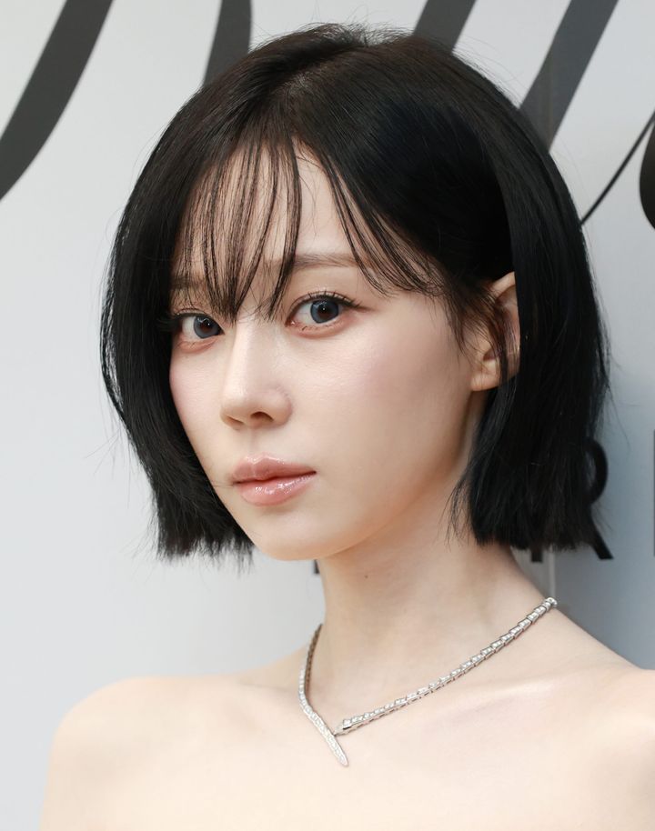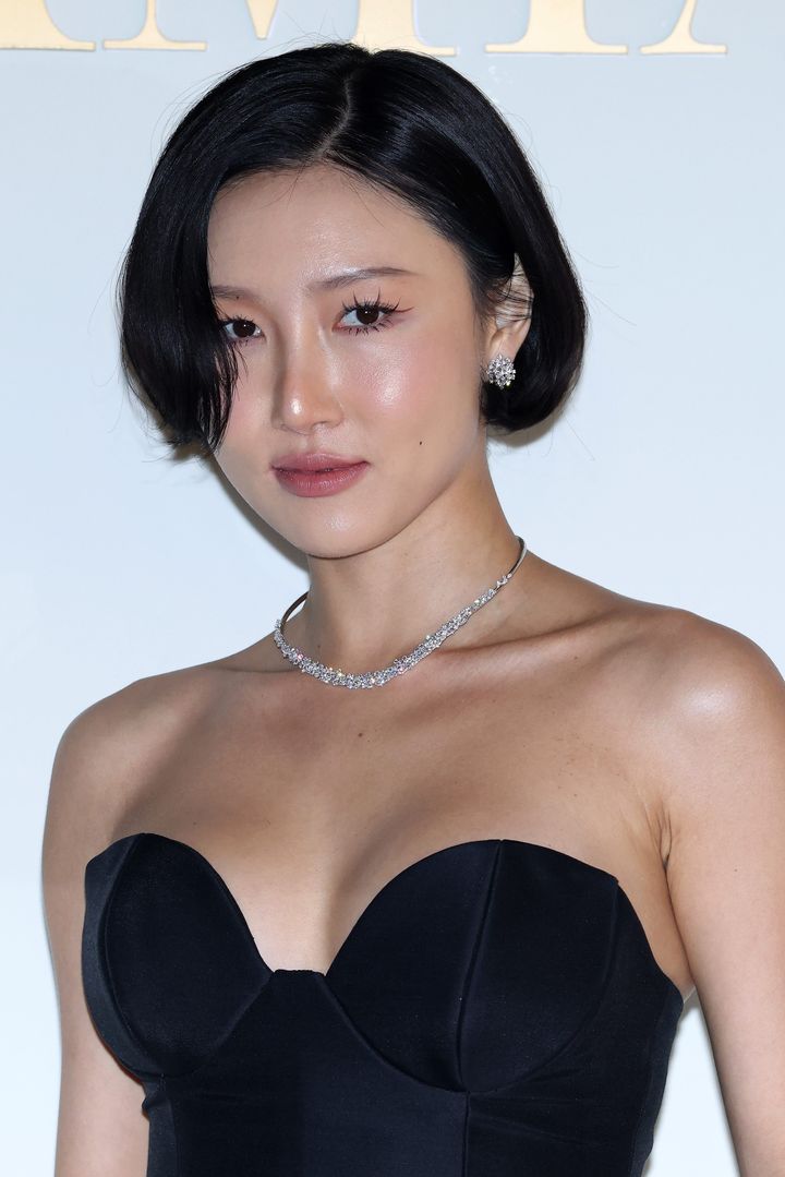 面長は“長さ”のコントロールが鍵。あごラインでカットしたコンパクトなタンバルなら、縦の印象をやわらげ、バランスよく見せてくれる。あごのラインより長いと、より顔の長さが強調されやすいので要注意。そんなときは、シン・イェウンのように毛先を軽く内側に入れ、長さを微調整するのがおすすめ。