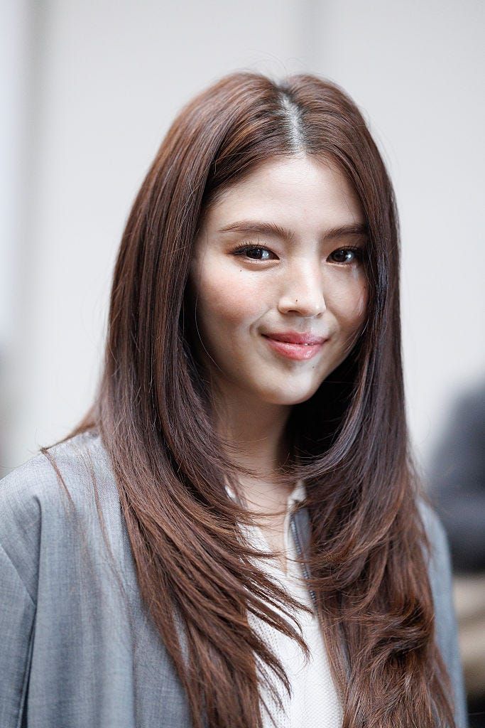 前髪なしのロングだと、縦のラインが強調されがち。そんなときは、ムン・ガヨンのようにフェイスラインにくびれを作ることで、縦に流れる視線をカット。自然と視線が横へと広がり、優しくフェミニンな印象に導いてくれる。