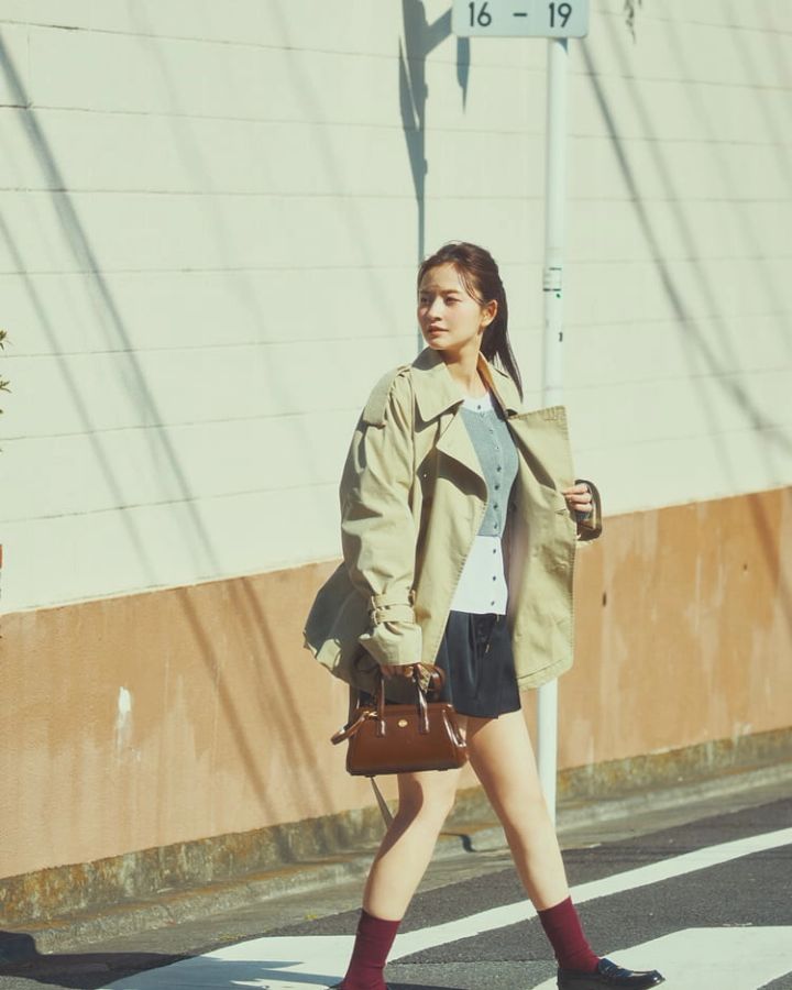 トレンチコート 22,000円/SLY(バロックジャパンリミテッド)レイヤードニット 4,730円/AUNTMARIE'S(アンティローザ)ショートパンツ 9,900円/COCO DEAL(ココ ディール)バッグ 34,100円/LEMEME リング 4,950円/LHME(シアン PR)ソックス 2,200円/Mardi Mercredi(MARDI MERCREDI JAPAN)ローファー 31,100円/カミナンド(グラビテート)