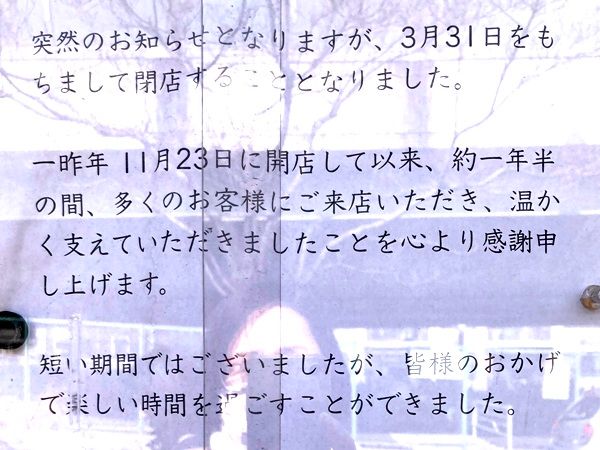 「閉店まで残りの営業日は最後まで心を込めて営業してまいりますので、ぜひお立ち寄りください」とのことです。