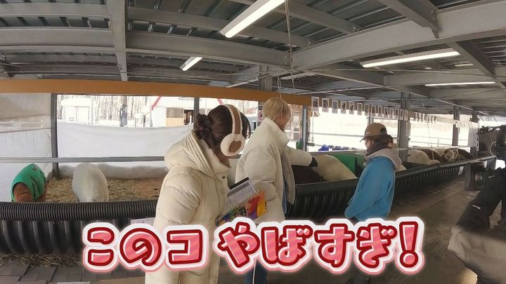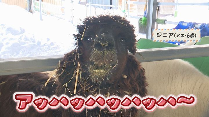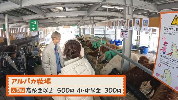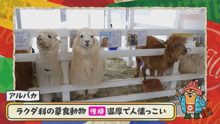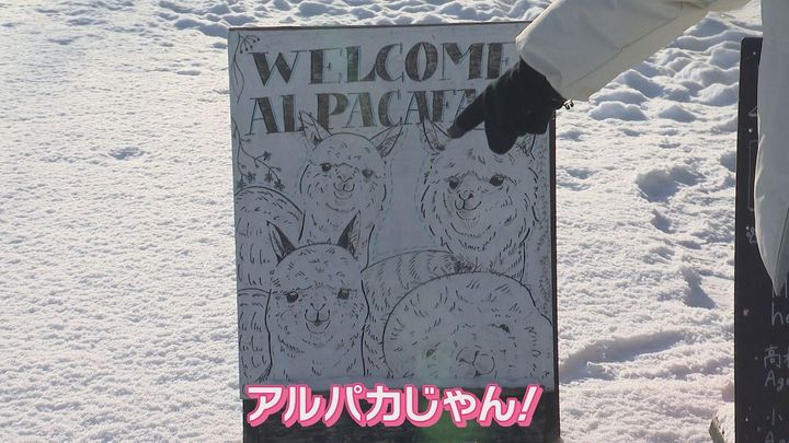 松尾アナ:「ここではアルパカとふれあうことができるんです」新くん:「やった!」
