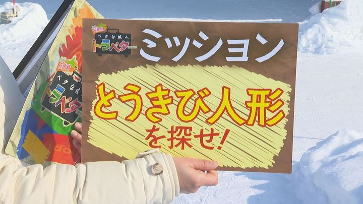松尾アナ:「こちらです!とうきび人形を探せ!」