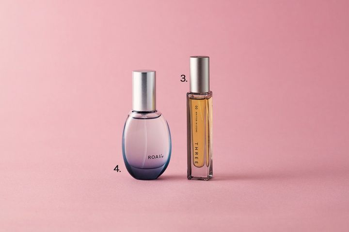 3.香りづけの原料は100%天然の精油のみ。マインドをリセットしてくれる香り。エッセンシャルセンツ R 00 10mL ¥5,940(THREE) 4.自然発想のフレグランス。爽やかさと石鹸を思わせる清潔感が広がる。マインドセンス グッドクライ 20mL ¥4,400(ロアリブ)※3月5日限定発売