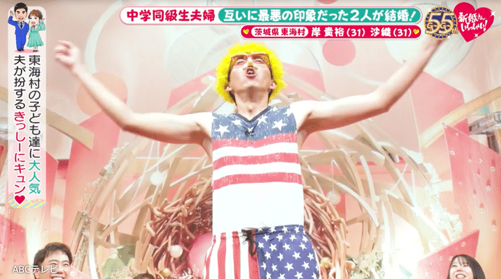 「『ファニーず』に入り、『きっしー』が生まれたおかげで、妻と出会えた」と語る夫。最後は再び変身し、「愛してるよー!」と全力で愛を叫ぶのだった。