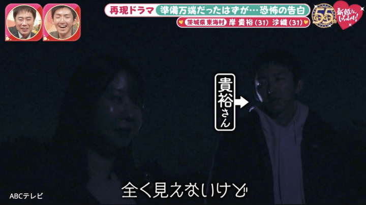 前日の昼にはシミュレーションもして準備万端。迎えた運命の日、夜景の綺麗な展望台へと妻を誘ったのだった。ところが着いてみると辺りは街灯ひとつない「ガチの暗闇」。しかも、天気も悪く夜景も見えない。 お互いの顔すら見えない。それなのに……なんと夫は手探りで告白を敢行してしまう!