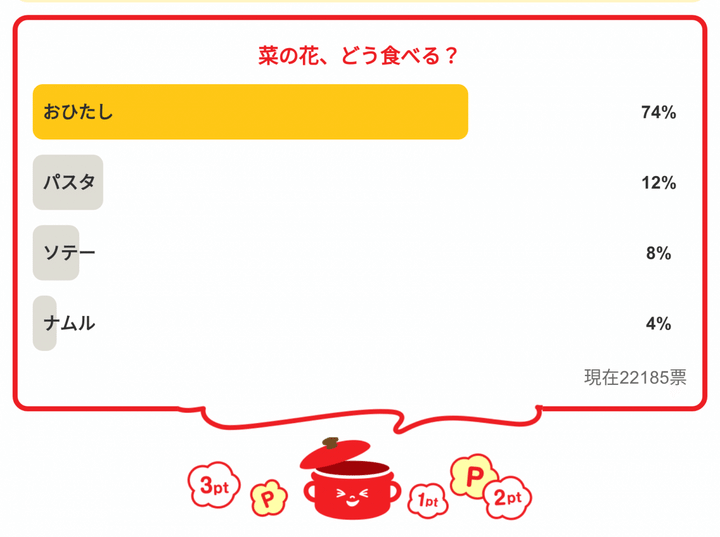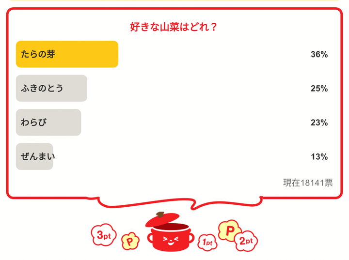 ほろ苦い山菜や旬の魚介、みずみずしい春野菜など、この季節だけの味覚は魅力がいっぱいです。ぜひ旬の食材を取り入れて、春の食卓を楽しんでみてくださいね。 それでは、次回のアンケートもどうぞお楽しみに!