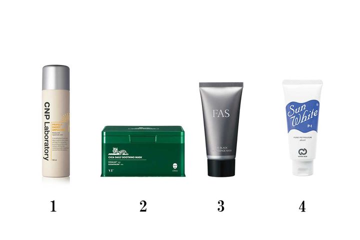 スキンケアについてお話しすると、洗顔後にCNPのミストを吹きかけてスッキリさせたら、VTのシカマスクで赤みを抑えながら肌をクールダウン。その後に化粧水を塗布し、FASのマスクでリンパを流します。マスクを肌になじませ、サンホワイトのワセリンを顔全体に塗ってもう一度ティッシュオフを。そこからメイクを開始します。」