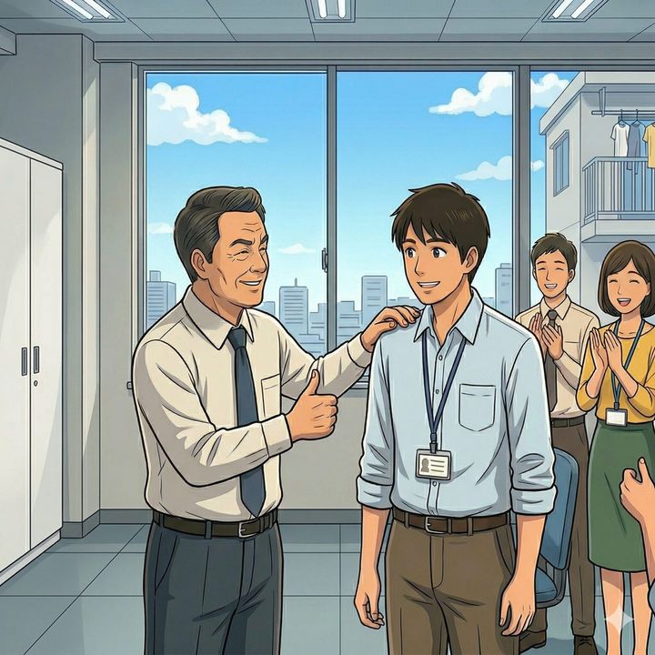 「今回のボーナス増額、お前の頑張りのおかげだって聞いたぞ!サンキューな!」