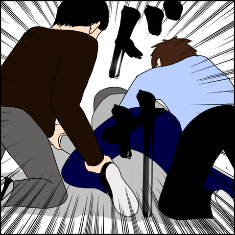 「金はある!」と言い張るマコトの言葉を一切信じられない友人たちは、さらに彼を問い詰めます。するとマコトはその場を逃げ出そうとして…。