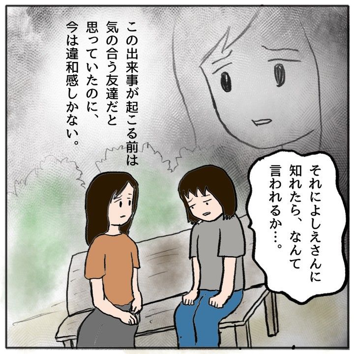 はじめは謝罪しようと思っていたあきこ。しかし先生に対しても逆ギレするよしえを恐れて流されてしまったのでした。非常識だと思われるのが怖くて懇談会にも顔を出せず後悔するあきこに、まゆみは今からでも謝罪に行ってほしいと思うのですが…。