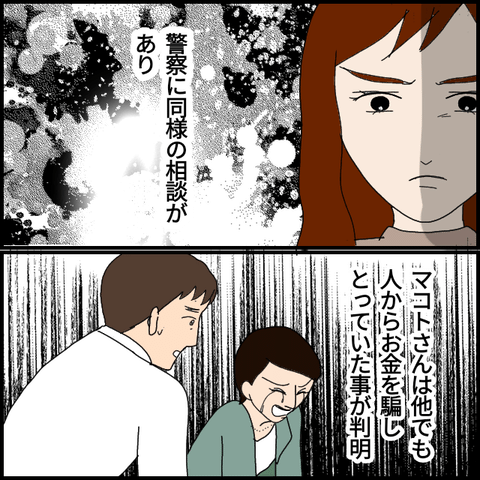 ついにマコトは逮捕されることに。店に訪ねてきた女性とは別に、他でもお金を騙し取っていたようです。