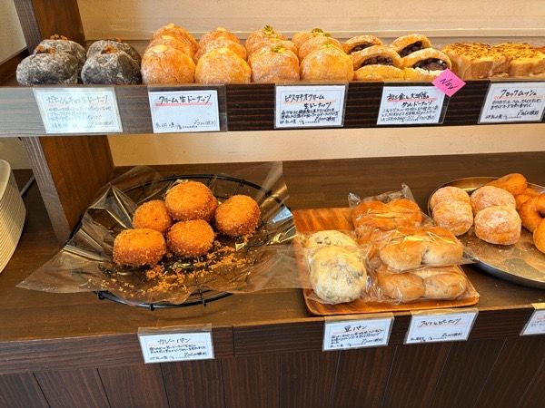 ほど良い広さの店内には、美味しそうなパンが並んでいます。 ハード系からドーナツ、デニッシュ、ブリオッシュ、クロワッサン、食パンと生地の種類が豊富で興奮します。