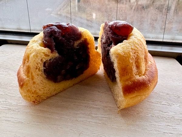 断面はこんな感じで、ブリオッシュ生地にお店で炊いた自家製の粒あんがたっぷり詰まっています。 バターと卵を感じるリッチな生地と、自然な甘さの粒あんの組み合わせが新鮮なアンパンです。