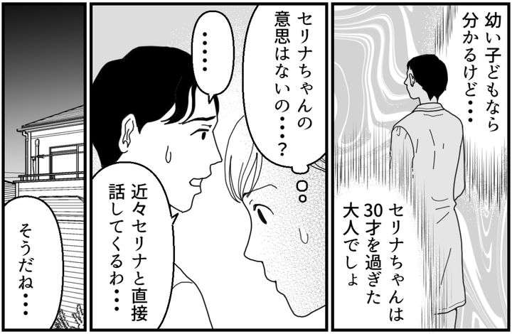 セリナちゃんは30才を過ぎた大人です。夫もさすがにおかしいと思ったようです。私もなんだか少し心配になってしまったのでした。