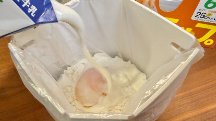 おやつ作りは楽しいけれど、ボウルや泡立て器、型など、後片付けが面倒で二の足を踏んでしまうことも多いですよね。そんな悩みを一掃する、驚きの調理法が話題です。なんと「アイラップ」の中で完結してしまうという、魔法のようなレシピがこちら。