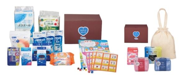 ラインナップは、トイレットペーパーやウエットティシュー、マスク、大人用紙おむつなど、衛生環境を保つための必需品8品と「エリエール えがおにタッチ ふれあいスゴロク」をまとめた「スタンダード」と、生理用品や吸水ケア用品など4品をまとめた「女性用」の2種類を販売します。