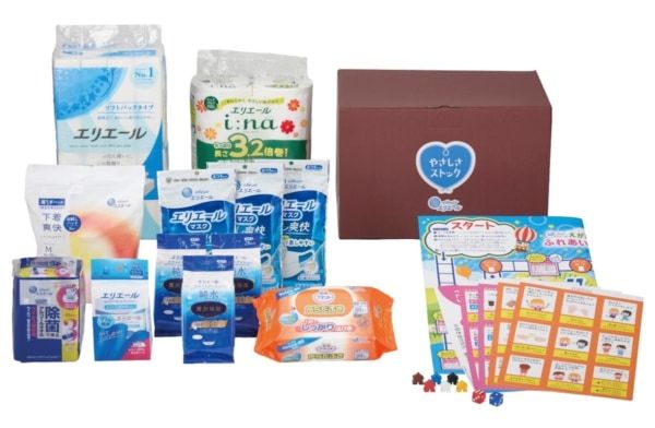 また、被災時の不安が大きい状況でも、周囲との会話やふれあいのきっかけとなるよう、「エリエール えがおにタッチ ふれあいスゴロク」(非売品)をスタンダードセットに同梱しています。