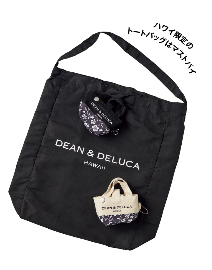 日本でも大人気のショッピングバッグ。ディーン&デルーカ ハワイ限定デザインは、小さなミニバッグチャームにコンパクト収納できる優れもの。