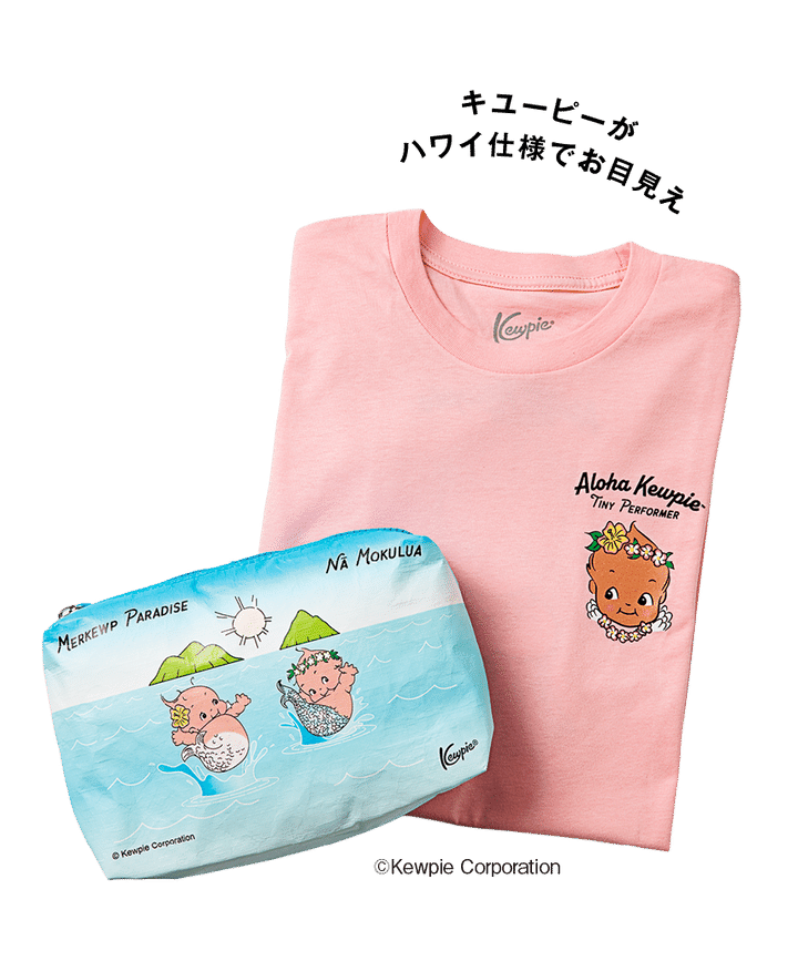 キユーピーもハワイ仕様はサンタン肌。ちょっぴりレトロなデザインが愛らしく、Tシャツやポーチなどバリエも豊富です。