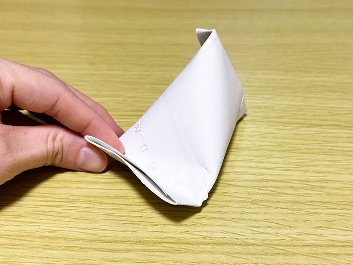 背面にくるほうを浅めに、スタンド部分はやや深めに折ることがコツです。