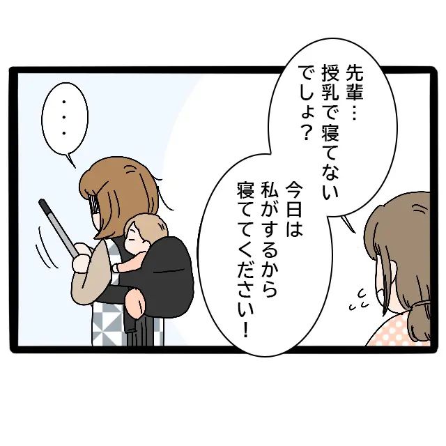 「先輩、授乳で寝てないでしょ?今日は私がするから寝ててください!」そう声をかけるも、みずほ先輩は何も言わずうつむくだけ。授乳でまともに眠れていないのに、家中の掃除までさせられたら倒れてしまいます。