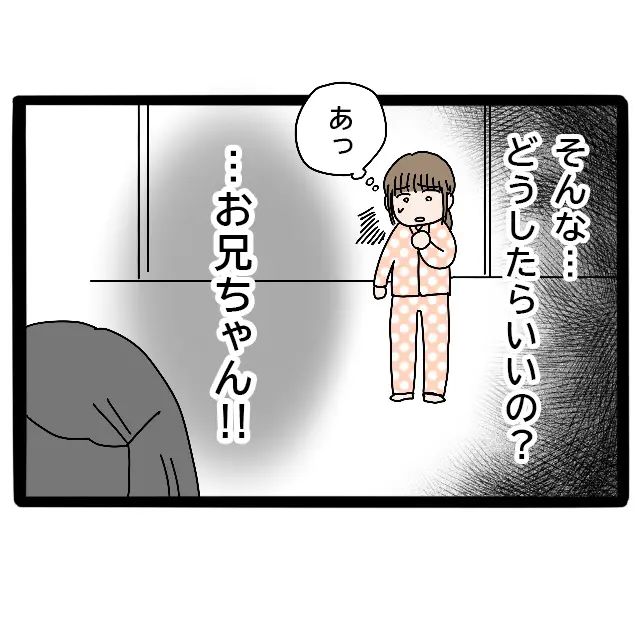 彼氏の隆明さんからプロポーズを受け、報告のため実家へ帰ることにしたカオリさん。両親より先に、仲の良い兄嫁みずほさんへメッセージを送りますが、返ってきたのは素っ気ない「おめでとうございます」の一言だけ。いつもと違う他人行儀な反応に不安を覚えつつも、予定通り帰省します。しかし、夕飯の時間になってもみずほさんは姿を見せません。みずほさんの夕飯を取り分けるのを忘れてしまった母に代わって、即席で夕食を作り、カオリさんは2階へと足を運びます。するとそこには、ひどくやつれて見る影もないみずほさんの姿が。どうやら、兄の恵一さんはみずほさんに育児を任せっきりにしているようで、みずほさんは育児疲れに憔悴しきっているようでした。その日の夜、眠っていたカオリさんは、誰かの怒鳴り声で目を覚まします。恐る恐る1階におりると、声の主は母で、みずほさんを責めている様子でした。カオリさんがみずほさんに声をかけると、みずほさんは「話は後でいい?今からしないと朝ごはんまでに終わらないから」とやけに焦っているようでした。