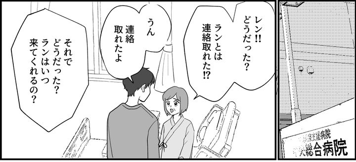 俺は再び母のお見舞いに行った。ランさんと連絡がとれたと報告すると、母は嬉しそうに、そして期待するかのように「いつ来てくれるの?」と聞いてきた。俺は母の顔をまっすぐ見つめることができなかった。でもちゃんと言わないといけない。これが俺たち家族の……俺の両親のしてきたことなのだから。