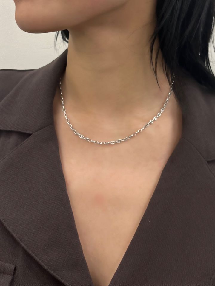 「シンプルなチェーンネックレスを毎日身につけています。基本つけっぱなしにしていますが、シルバーなので『なんかくすんできたかも?』と思ったら、定期的にセルフクリーニングしています。きゃしゃすぎず主張が強すぎない、さりげない存在感のチェーンネックレスは、意外と見つけるのが難しいもの。『出合えてよかった!』と満足しています。同ブランドのピアスとこのチェーンネックレスは、肌身離さず身につけているので、ないとソワソワしてしまうほど。お気に入りのアイテムです」