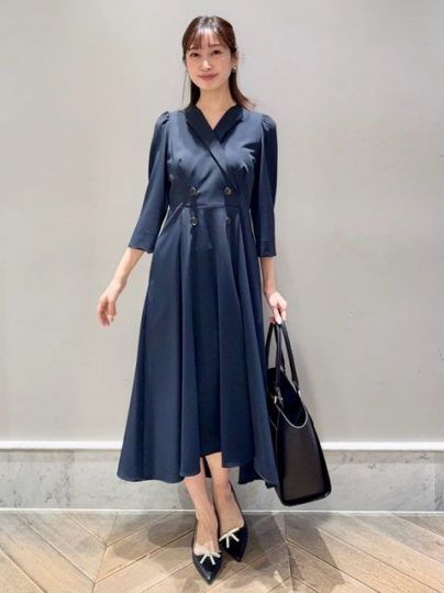 甘くなりがちなワンピースコーデでもトレンチデザインならきちんと感がUP。13インチのPCも収納可能な大きめバッグは、1つ持ってると便利です。