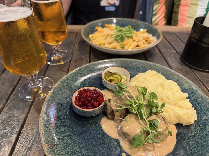 お土産を物色した後は夜ごはんへ。スウェーデンといえばミートボール!賑わっている良さげなお店を見つけました。