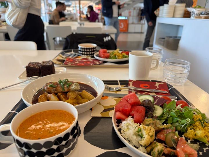 マリメッコ本店、アウトレット店に来ました。 14時まで限定の社員食堂でマリメッコランチ。やりたいことのひとつだったから嬉しい。時間間に合って良かった。ここも日本人で溢れていました。