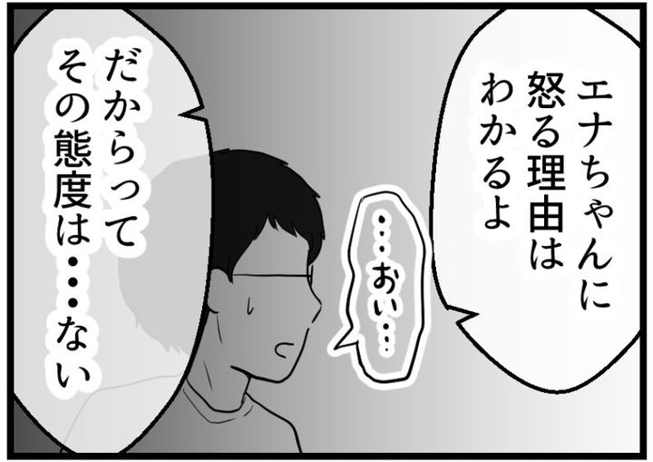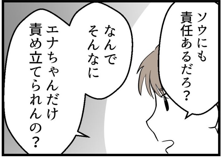 海原こうめさんが読者のラムさんの体験談を漫画化。ラムが「こうされて嫌だった」ということを話すと、エナは何か言いたそうだったが、ソウが「早く謝れ!」と怒鳴った。するとケンがついにソウに対して「黙れ!」と厳しい言葉を放つ。