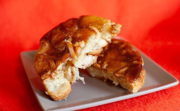 片側だけ飴(?)でコーティングされていて、見れば見るほどクイニーアマン。そのコーティングと一緒に、ナッツも閉じ込められているようです。