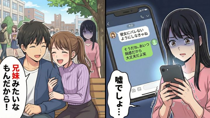 「ただの兄妹みたいな関係だよ」と言い張る彼氏と女友だち。不審な行動がエスカレートし、ついに追い詰められた私は禁断の行動へ…スマホのなかにあった【衝撃のやり取り】とは!