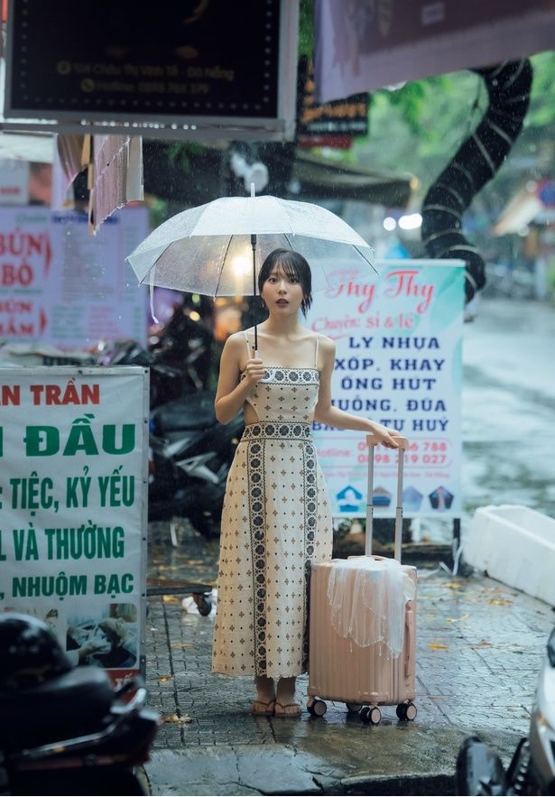 奥:ほぼほぼ、です。渡航前に体調を崩してしまったので不安もあったんですけど、撮影初日には元気になりました。でも、現地の天気が全日ほぼどしゃ降りだったんです。自分では晴れ女と思っていますし、水着の撮影で雨が降ったのは初めての経験でとまどいました。でも「雨の艶っぽさもいいんじゃない?」と切り替えて、採用されたカットやオフショットを見たらかわいく写っていたし、アリだなって思いました(笑)。