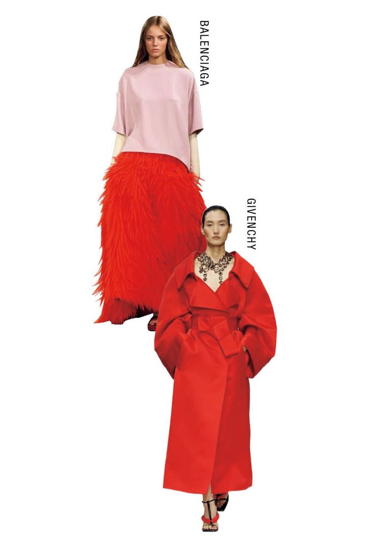 キーカラーはズバリ、ビビッドな赤=トマトレッド。くすみがちな我々の肌色にもマッチし、トーンアップをも狙えちゃう! そういった意味でも、思いきってアウターやトップスで取り入れるのがオススメ。想像よりもずっと合わせやすいはず。