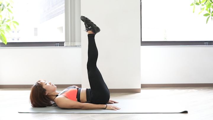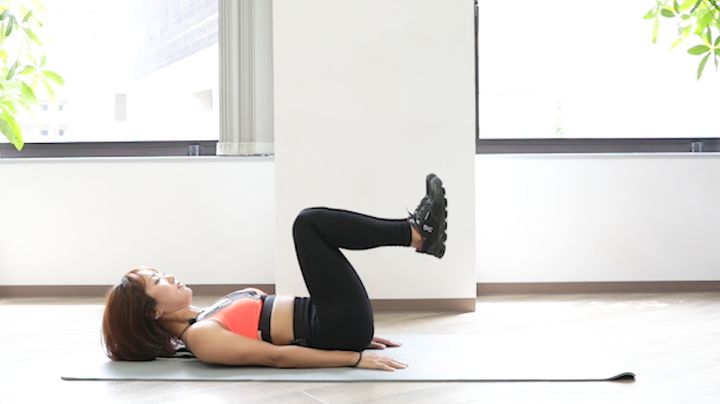 1.仰向けに寝転がり、両手をお尻の下に置く