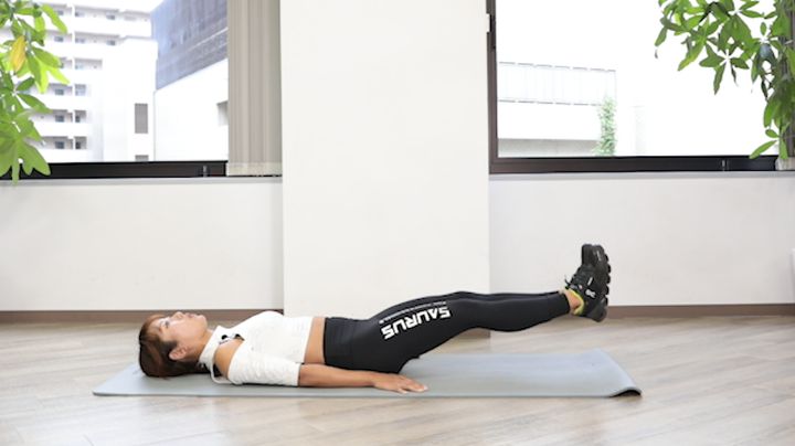 2.足を約3秒かけて上げて、約5秒かけて下げていく