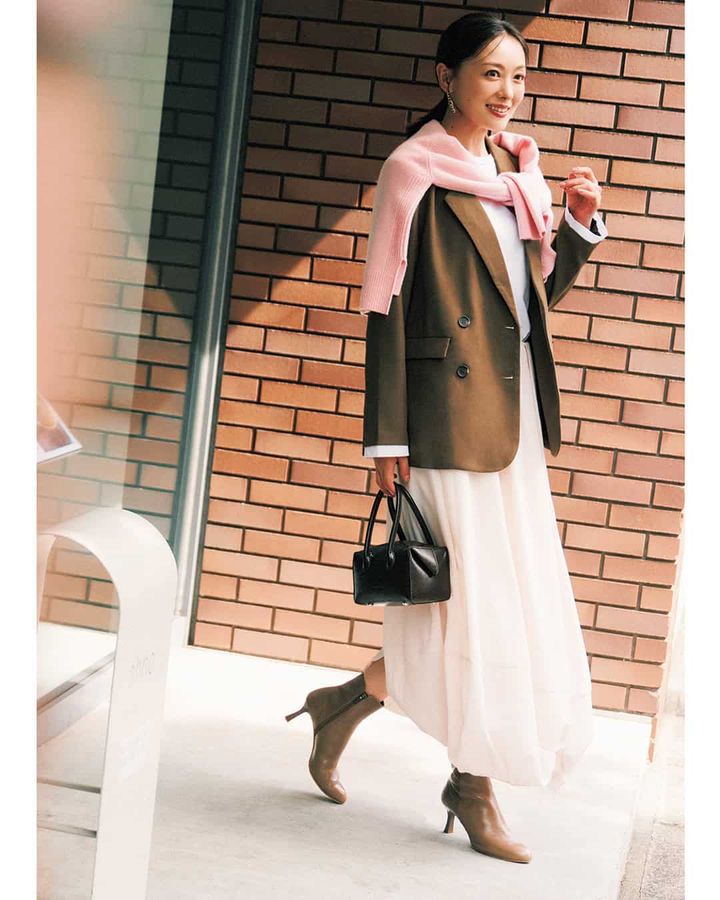 ③デニムともスカートともバランスが取りやすい!「レイヤード風ジャケット」