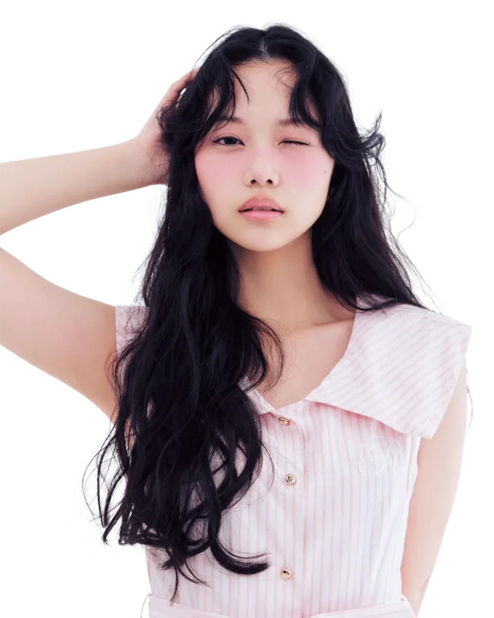 チークのピンクを顔じゅうに散らしたワントーンメイクの完成。甘さ&しゃれみをまとえるから全人類ウケが叶う!