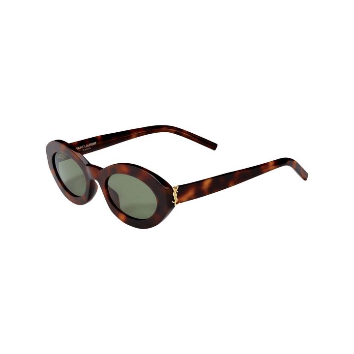 クラシックな印象が強いオーバル形とべっ甲調の組み合わせが、太いフレームによってモードな表情に進化。両サイドに“YSL”のカサンドラロゴがあしらわれた、アイコニックなサングラスです。個性的でありながらカジュアルにもドレスアップにも使えて重宝します。サングラス/64,900円