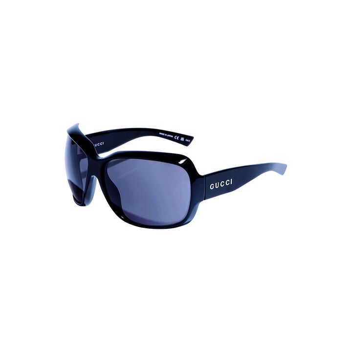 頭部を包み込むように弧を描く立体的なフォルムが美しい、オーバーサイズの黒いスクエアフレーム。個性的な形に「グッチ」の美意識が凝縮され、顔周りに洗練されたインパクトをもたらします。テンプルにあしらわれたブランドロゴも、装いをリュクスに引き上げる要素のひとつ。着こなしを一変させる力をもった一本です。