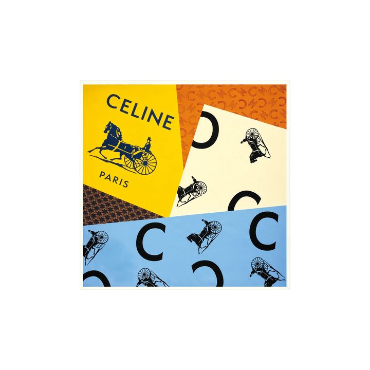 品格のあるサルキー(馬車)モチーフは、特に1960年代から70年代に多用された「セリーヌ」の伝統的アイコン。それを大胆にアレンジしたパッチワーク風のデザインも、アーカイブから着想を得ています。多色使いは服の色とリンクさせやすく、顔周りを明るく際立たせます。
