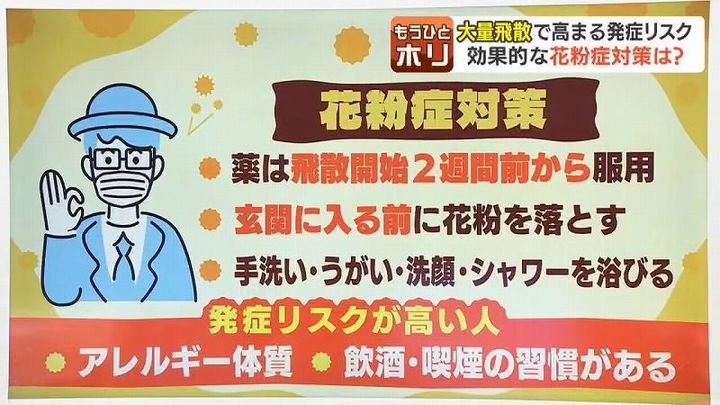 また、花粉症の薬を服用している人は、症状が出る前から飲み始めることが重要だと言います。