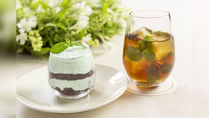 ホテルでは、花粉症から解放されスッキリと過ごしている人に、もっと爽快感を味わってほしいと、ミントを使ったスイーツセットも用意しました。