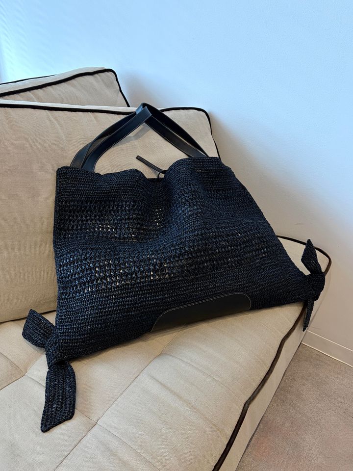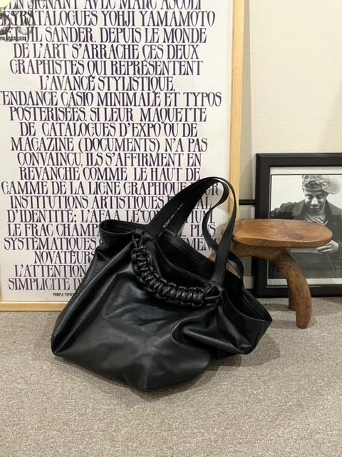 「エフォートレスで洗練されたデザインに、『ヴァジック』のシグネチャーであるノット(結び目)が愛らしいアクセント。黒のビッグバッグ特有の重厚感や硬さを感じさせない、柔らかな質感とフォルムが一番のお気に入りです。春夏の装いにも合わせやすい軽やかさがあり、肩に心地よくフィットする太めのハンドルも高ポイント。ラップトップをはじめ必要なものがすべて収まるサイズ感なので、オン・オフを問わず、日々のコーディネートに欠かせない存在です」