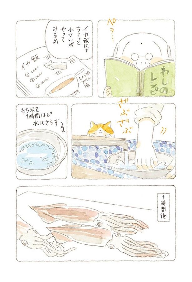 3. もらったイカを使って料理。小さくて苦戦したものの、かわいい“イカ飯”の出来上がり/ねことじいちゃん7(31)