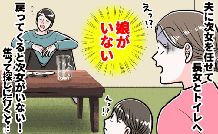 しばらくすると長女が「トイレに行きたい」と言うので、次女を夫に任せてトイレへ行ったところ……。
