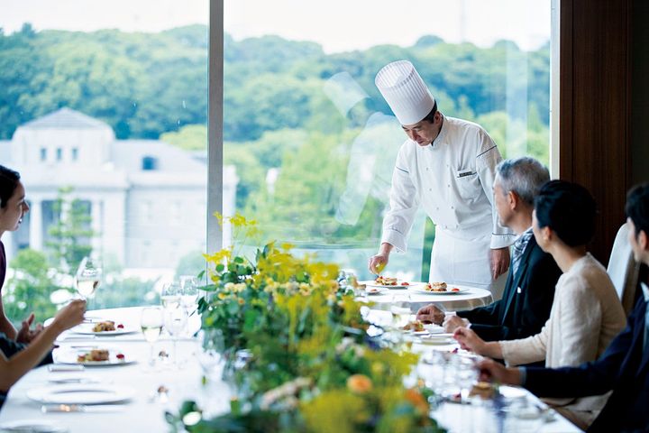「セルリアンタワー東急ホテル」の少人数ウエディングは、眺望が素晴らしい明るい会場「ソレール」が舞台に。6〜50名の披露宴ができ、テーブルの種類やセッティング、スペースの使い方についても柔軟に対応してくれます。お年寄りや子どもたちも思い思い快適に過ごせるのがメリット。食事も評価が高く、総料理長直々に腕をふるいます。