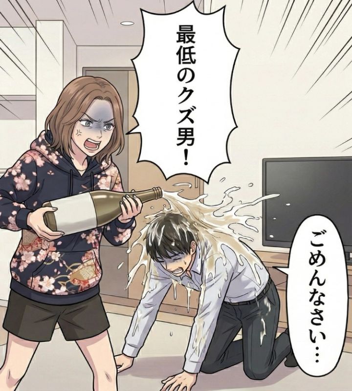 真実を知った女性は激怒し、「最低のクズ男!」と彼にお酒をぶちまけます